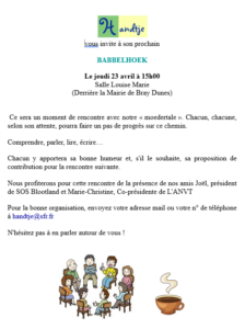 Voici les invitations pour nos causeries de février à Coudekerque, Oost-Cappel et Bray-Dunes